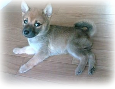 | 胡麻毛 赤毛に黒毛の差し毛が有る子です ・仔犬の時では判断のし難い毛色です モデル犬男の子のページの太郎くん | ![]() |